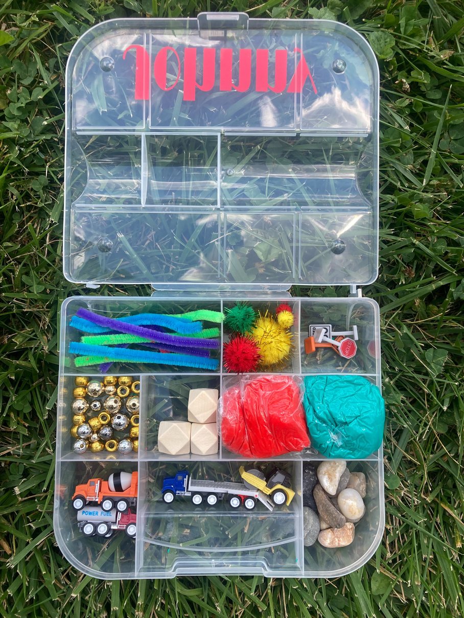 Themed play bins with a focus on sensory and fine motor skills created by a mom/pediatric occupational therapist